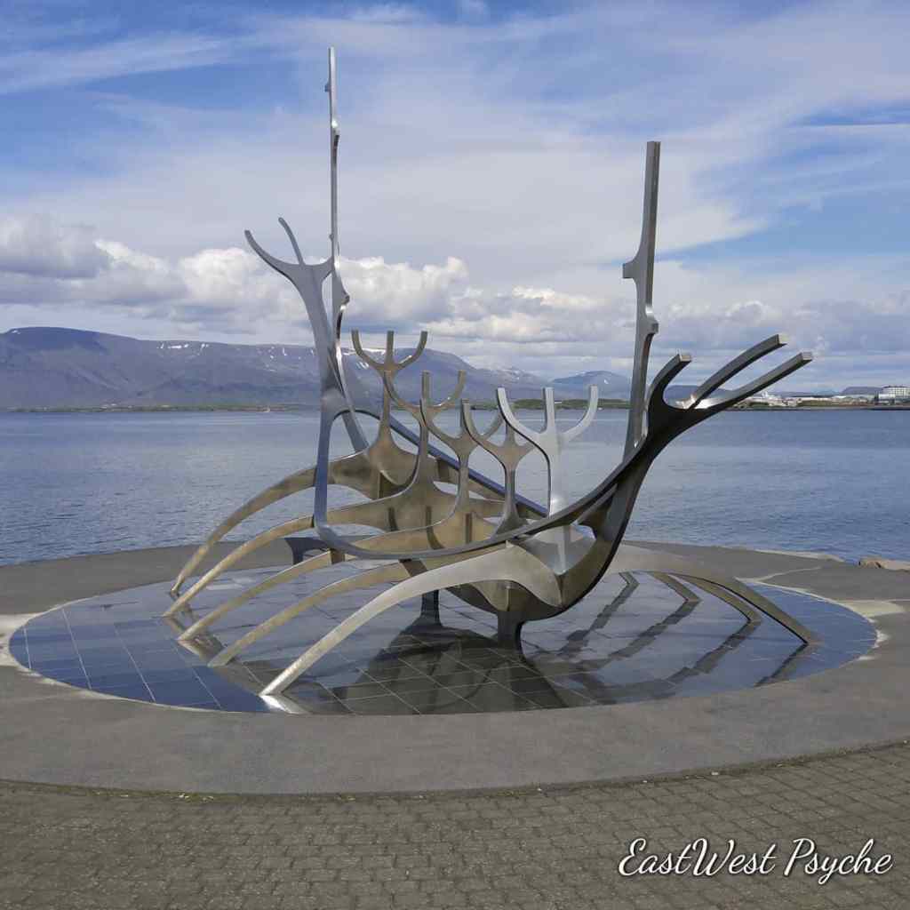 Long after the Nordic region of Europe was settled, Vikings finally reached Iceland. This remains a strong element of the Icelandic culture today: bold, courageous, at times fierce, hardy, self-motivated, and adventurous, which no doubt is reflected in their progressive ideals. Icelanders also maintain a strong awareness of the greater world and their place in it, as an explorer might; this is at odds with the insular nature typically associated with islands, especially one so isolated. Seen here, in Reykjavik: Sólfarið, The Sun Voyager, by artist Jón Gunnar Árnason (1931–1989).