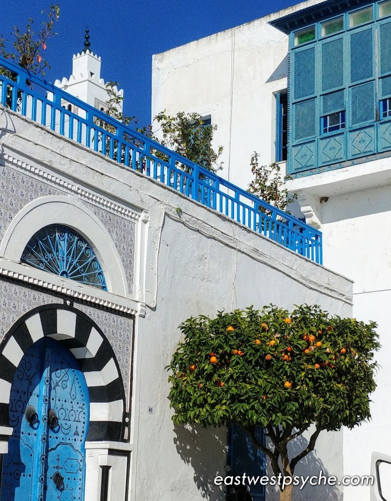 Sidi Bou Said, a resort town just north of the capital city, well known to artists both Tunisian and foreign for its stunning beauty and dramatic seaside cliff landscape, provides architectural confirmation of early Greek and recent Ottoman influences — and Tunisia’s firm place in Mediterranean culture. The notable colour scheme was introduced in the early 20th century by French painter and musicologist Baron Roldolphe d’Erlanger, who built a palatial residence in Sidi Bou Said; blue doors and windows, however, are a longstanding tradition among various Mediterranean cultures — as blue was thought to keep evil at bay.